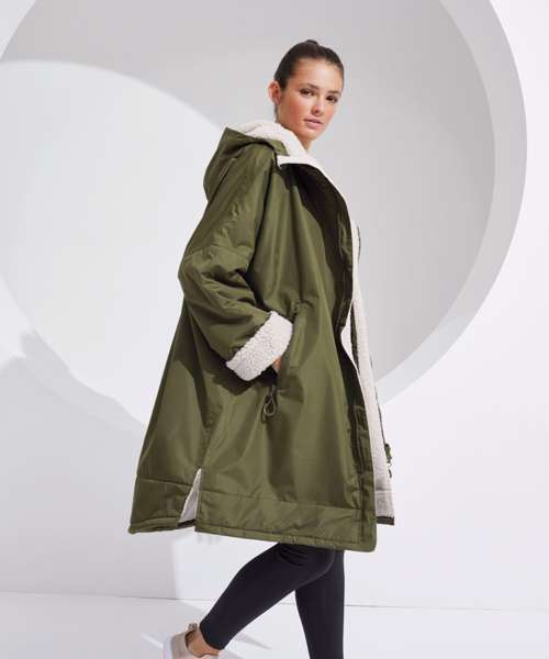 TriDri’s latest outerwear is essential in everyone’s wardrobe! The TriDri® All-seasons waterproof changing robe boasts a waterproof exterior with hood to keep you dry, as well as adjustable straps to the wrists and chin guard to help lock in heat on windy days. The cosy sherpa fleece interior absorbs moisture and keeps you warm, making it a great choice after water activities or rainy days on the football pitch. Designed to be oversized, the jacket is ideal for changing into warm, dry clothes, offering a double zip – so more room to move! Featuring multiple deep pockets, inside and out, it’s not just for athletes, but perfect for rainy commutes or frosty walks with the dog.